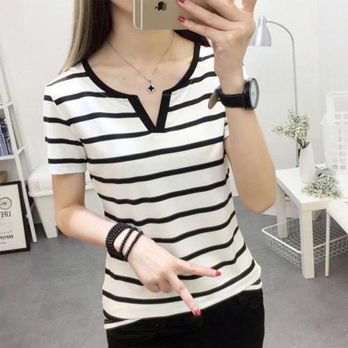 TKX 1+1 여자 티셔츠 스트라이프 하이넥 가을 겨울 면 긴팔 두꺼운 패션 캐주얼 상의 K37