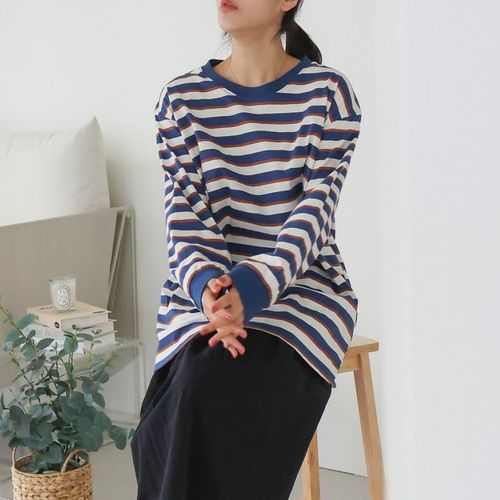 데일리앤 원트 여성 루즈핏 긴팔 스트라이프 맨투맨 티셔츠 봄 가을