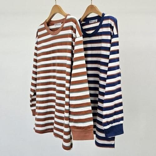 [모코블링]멀티 스트라이프 카라 티셔츠 긴팔티 카라티 슬릿티 럭비티 스트라이프티
