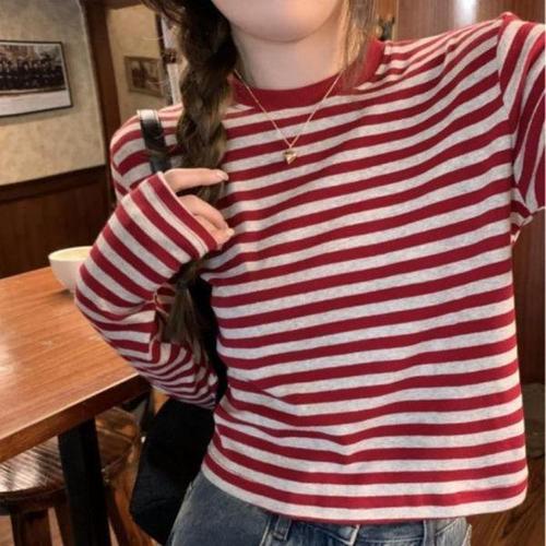 미니 레드와펜 스트라이프 여성 긴팔 티셔츠 AZ T207 051 1