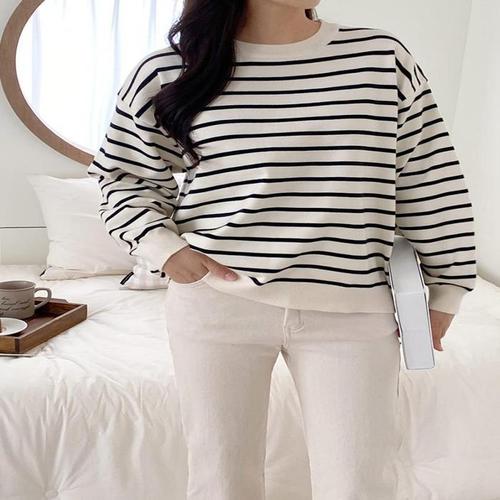 여성 넓은 스트라이프 맨투맨 1P 박스핏 긴팔티 패션 WFK2BSB