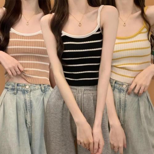 여성 여름 외출 이너 레이어드 패션 줄무늬 스트라이프 니트 슬림 스타일 민소매 나시