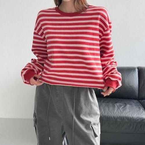 티셔츠 루즈핏 단가라 스트라이프 긴팔 맨투맨 가을