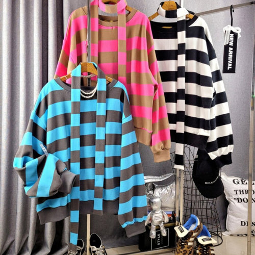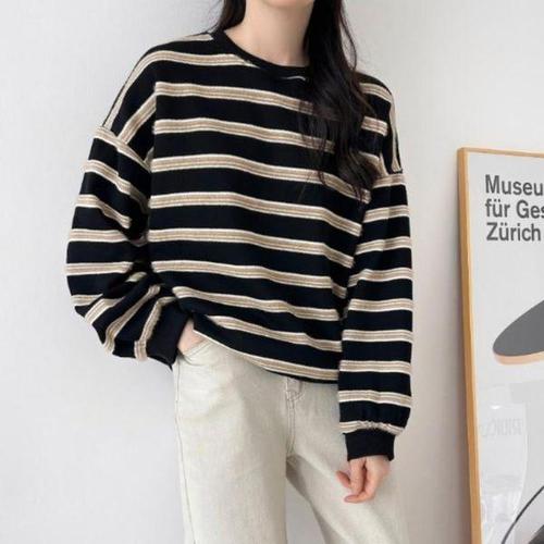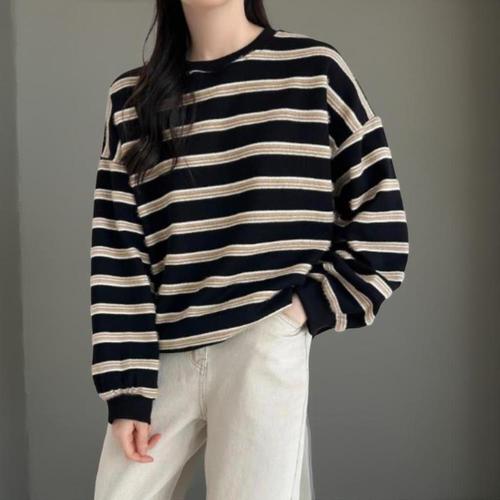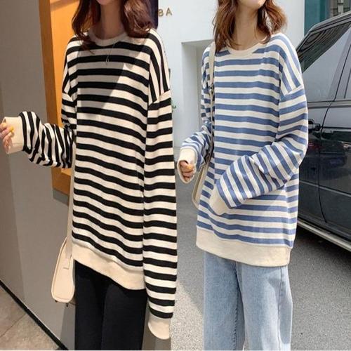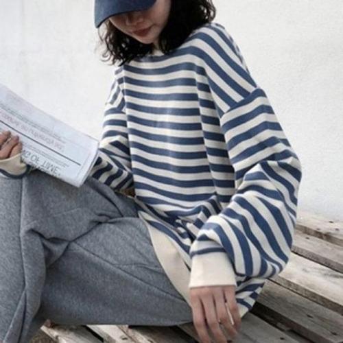 [옷자락]여성 클래식 스트라이프 면혼방 루즈 맨투맨