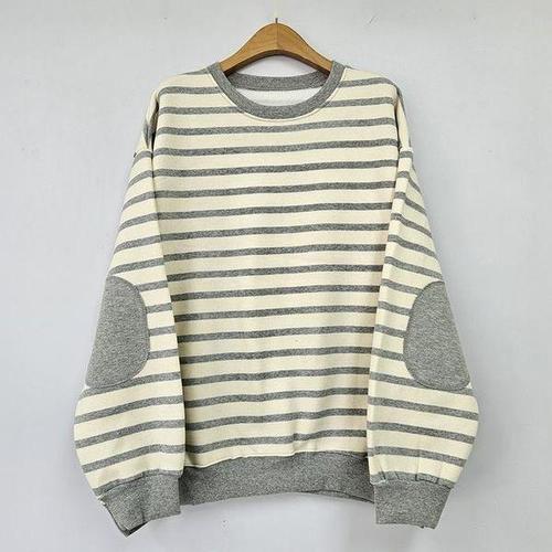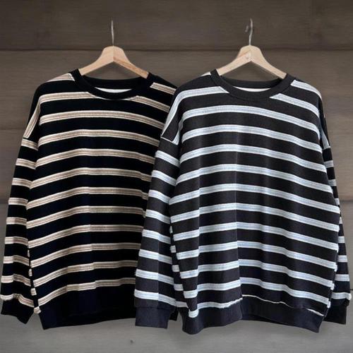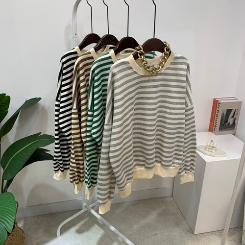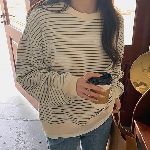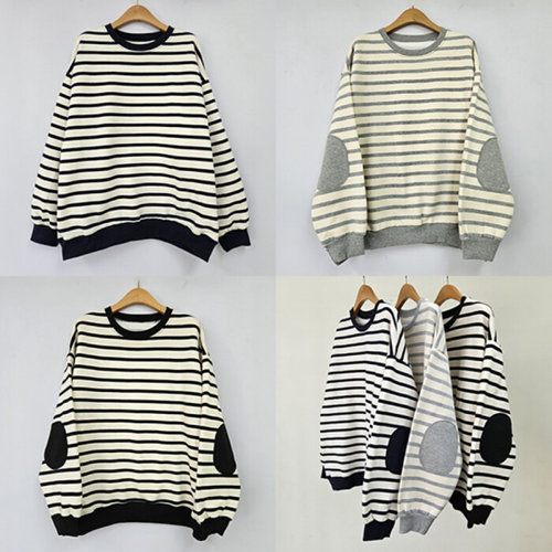 [옷자락] 여성 클래식 스트라이프 면혼방 루즈 맨투맨