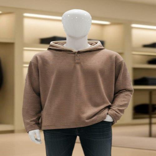 [피클]스트라이프 단추 헨리넥 후드 맨투맨 티셔츠