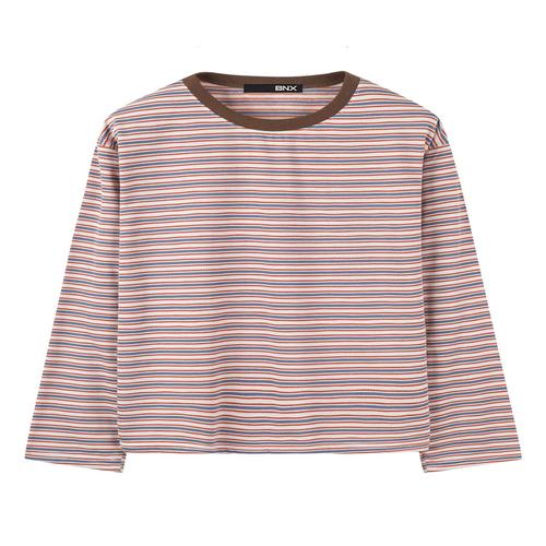 [미라클세븐]여성 루즈핏 스트라이프 면혼합 맨투맨 티셔츠