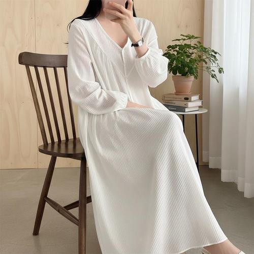 [다잇템]여자 코튼 큰사이즈 실내복 줄무늬 롱원피스 (45899630)