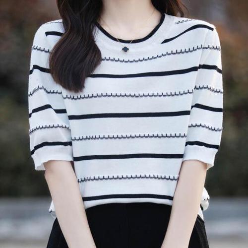 스트라이프 라운드넥 긴팔 티셔츠 여성용 세련된 캐주얼룩zhl
