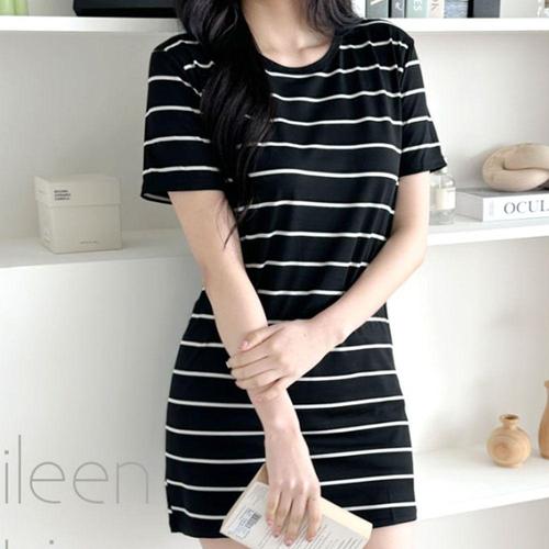 [오너클랜]인기상품 루즈핏 스트라이프 면 반팔 미니 원피스 일자 데일리 잠옷 스판 짧은 [WFLKWZQ_260304]