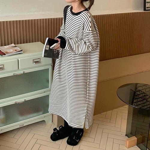 [오너클랜]인기상품 캠퍼스 룩 여자 대학생 오버핏 스트라이프 면 원피스 [WFLS83X_260123]