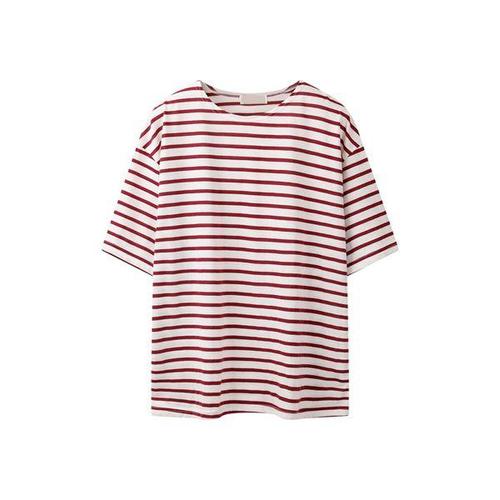 라뷰드 여성 라운드넥 줄무늬 반팔 티셔츠 봄가을 여름 데일리 스트라이프 상의 기본 심플 루즈핏 오버핏 단가라 반팔티