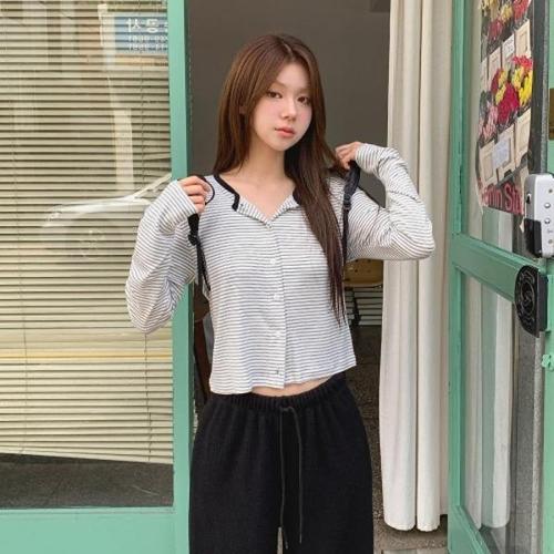 [엄지척]크롭 여성 스트라이프 가을 루즈핏 가디건 봄 니트_19805810_667501