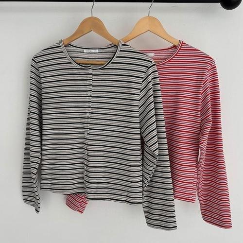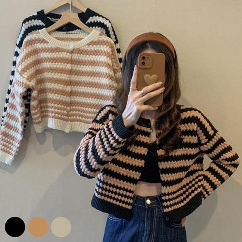 [엄지척]살짝 크롭 기장 예쁜 배색 스트라이프 가디건 URD-248_19805202_667501