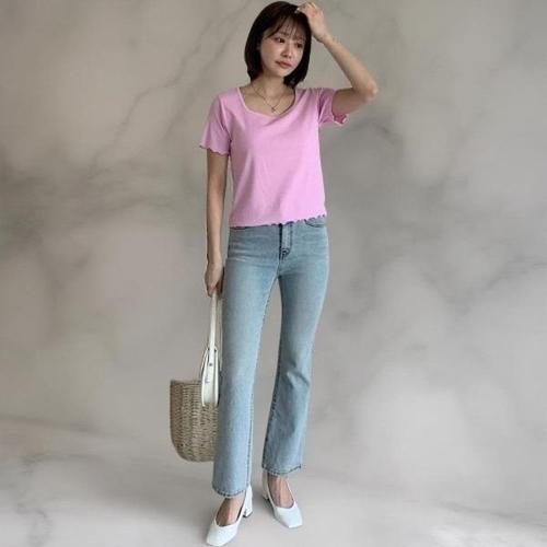[다잇템][다잇템] 여성 면원단 부드러운 반소매 단가라 세미크롭 일상용 티셔츠_23397389_588872