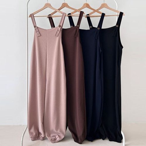 [옷자락]여자 조거핏 와이드 버튼 멜빵 봄 등원룩 점프수트