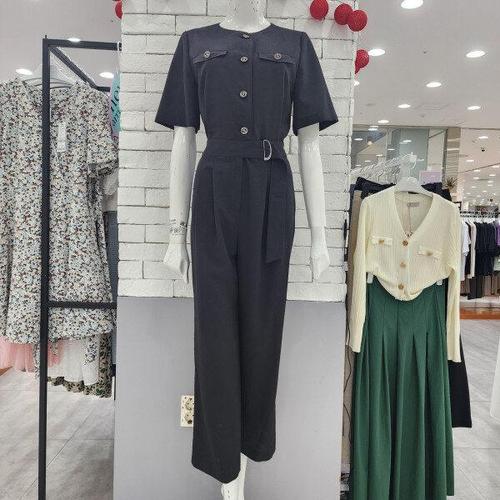 [베스띠벨리]라운드넥 버튼 턱 벨티드 점프수트 ( BGOAF2546 )