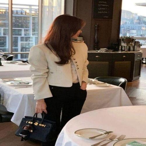 [끌레아]단정한 3컬러 데이트룩 유광버튼 가을 트위드자켓