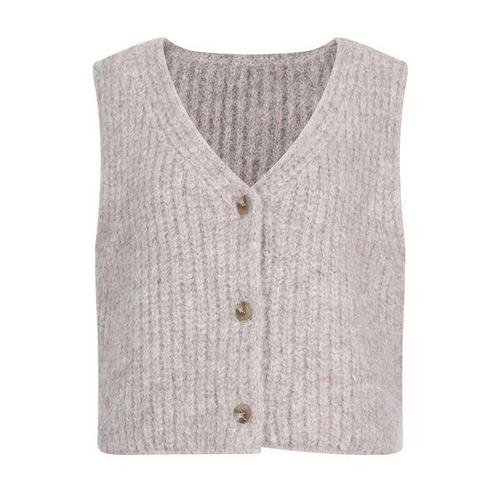 [샵앤]국산 여성 Y단추 뜨개 골지 레이어드 니트 조끼 BOM-WVS-20951-오트밀
