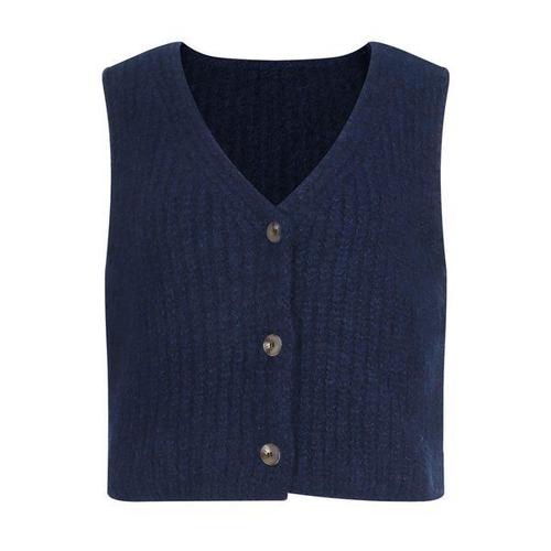 [샵앤]국산 여성 Y단추 뜨개 골지 레이어드 니트 조끼 BOM-WVS-20951-네이비