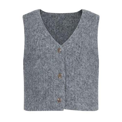 [샵앤]국산 여성 Y단추 뜨개 골지 레이어드 니트 조끼 BOM-WVS-20951-그레이