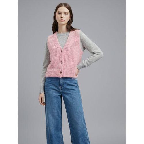[샵앤]국산 여성 Y단추 뜨개 골지 레이어드 니트 조끼 BOM-WVS-20951-핑크