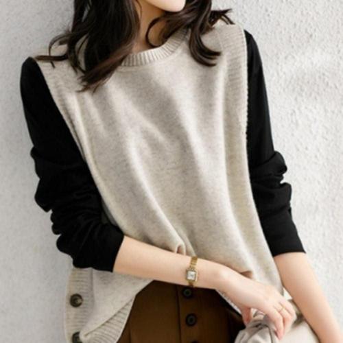바바템 여성 니트 조끼 베스트 간절기 여자 레이어드 봄 가을 겨울 라운드넥 심플 루즈핏 데일리