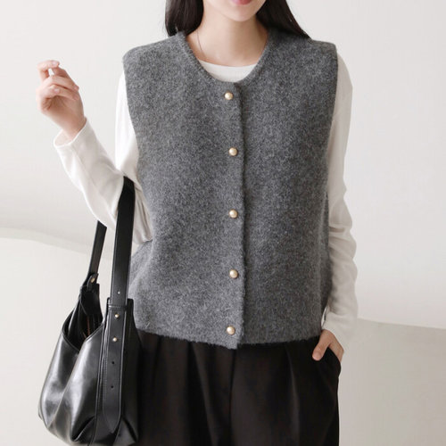 [쉬즈미스] 라운드넥 버튼업 니트 베스트_SSKVTO42050