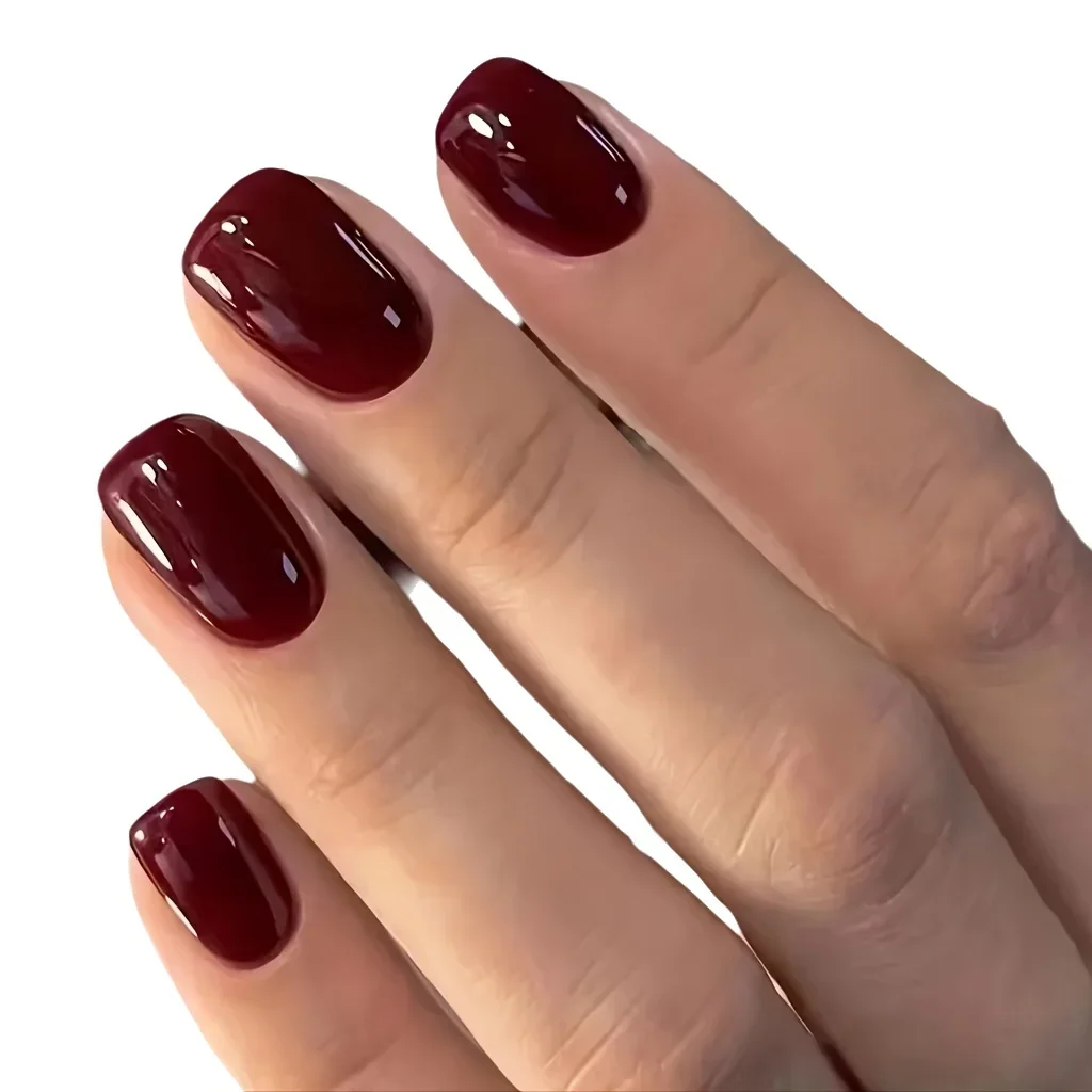 TEMU 미시 10개 숏 스퀘어 프레스온 네일, 레드 톤 글리터 리본 디자인, 펄 광택 마감, 일상, 업무, 학교, 데이트, 파티에 사용 가능한 재사용 가능한 네일 세트 - 젤리 접착제 및 네일 파일 포함