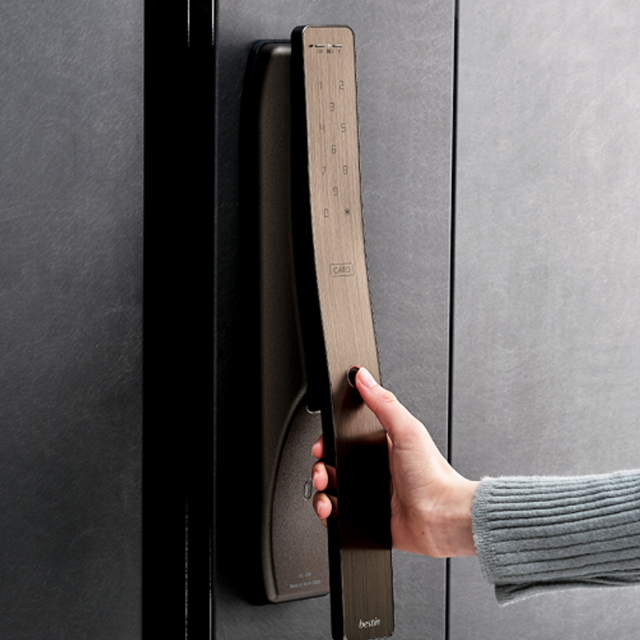 쿠잉 손잡이 있음 지문인식 푸시풀 디지털 도어락, DL-HY03S, 방문설치