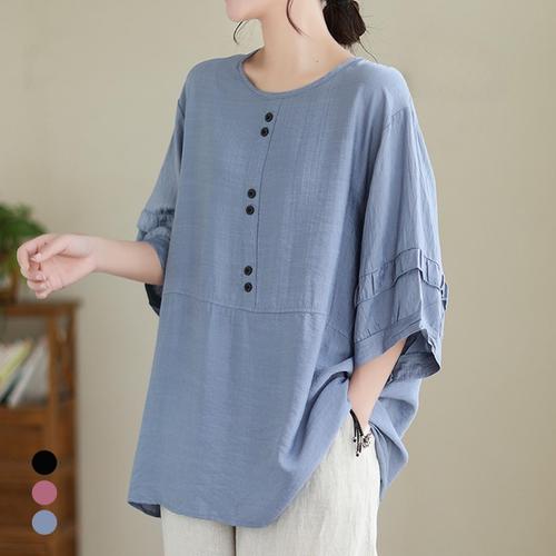 슈팅스타 / 카라넥 루즈핏 더블버튼 심플 블라우스 908545
