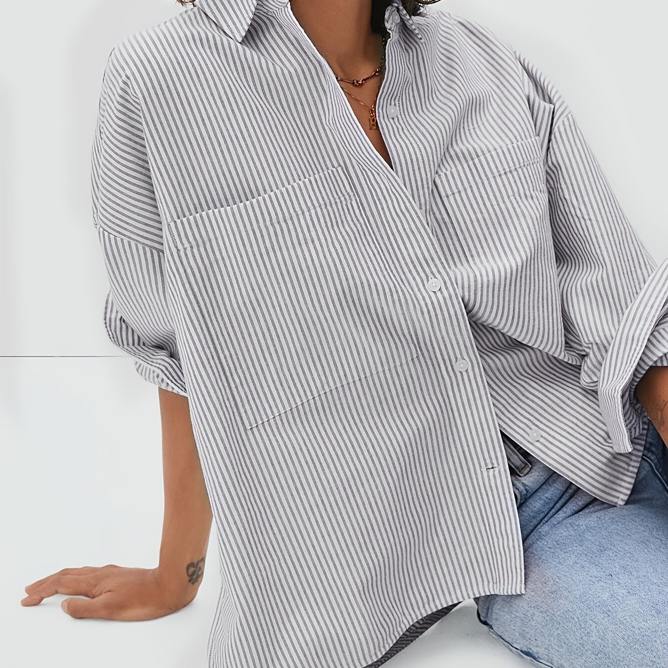 TEMU 가을 신상 세로 긴팔 셔츠 여성 아우터웨어 봄 가을 캐주얼 루즈 칼라 셔츠 재킷
