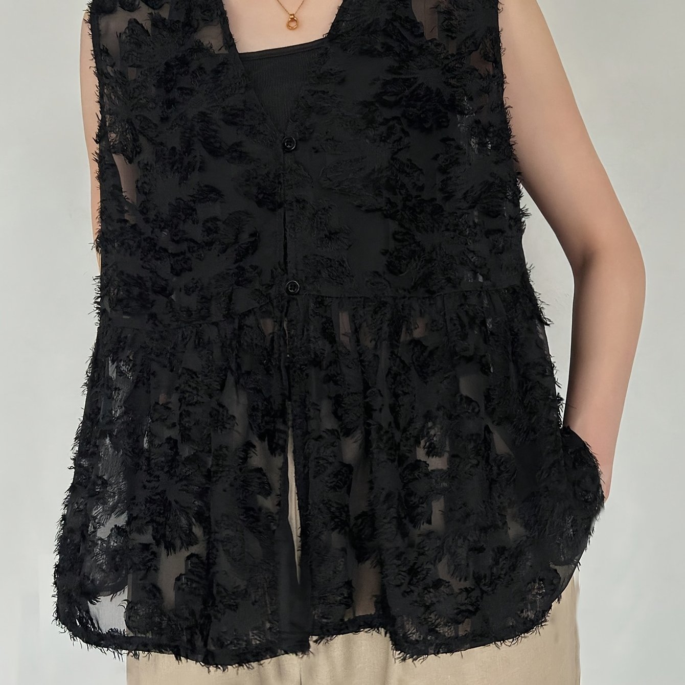 TEMU 2026 여름 신상 프렌치 스타일 메쉬 민소매 베스트 루즈핏 V넥 시스루 베스트 소량 디자인 센스 아우터