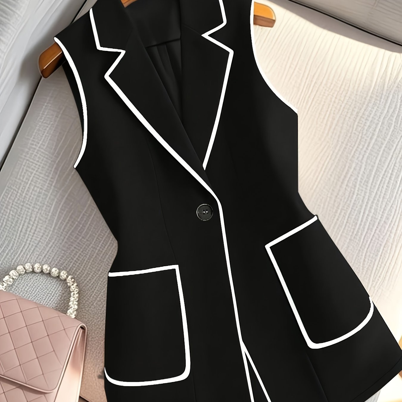 TEMU 여성용 우아한 컬러 블록 민소매 재킷