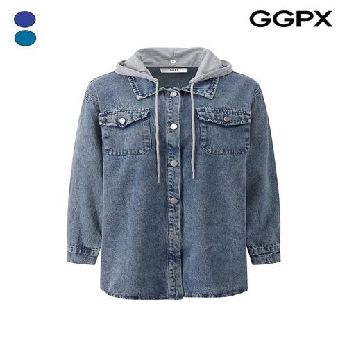 [GGPX]배색 후드 탈부착 롱 데님 자켓 (GPAJK018F)