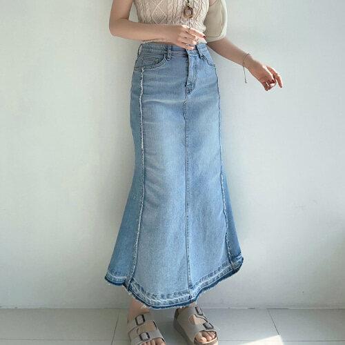 여성 데일리 밑단수술 머메이드 롱 데님 스커트 WDMS-WSK-TS13840282