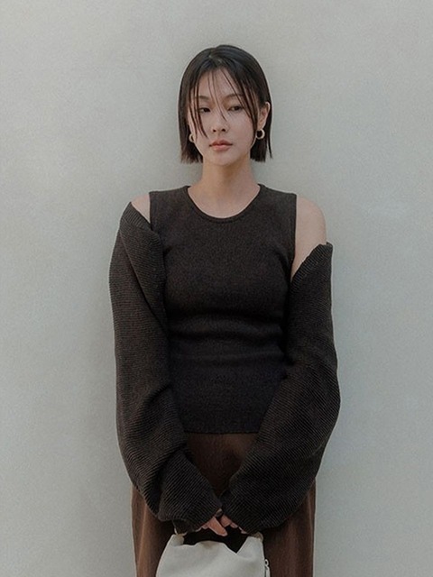[메무아] 리걸 보트넥 볼레로 니트세트(브라운)