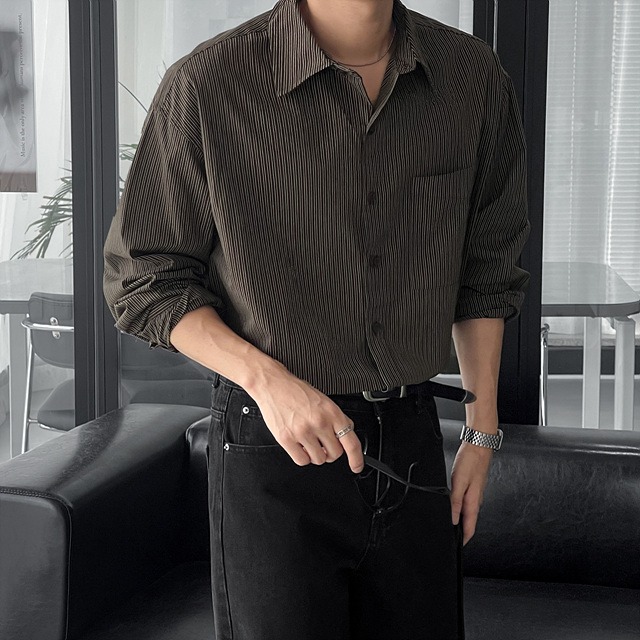 남자 노단추 데이트룩 심플 포인트 카라 니트 티셔츠