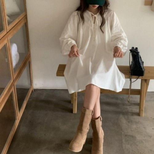 스트릿제이 메이 라운드 스판 양 셔링 미니 긴팔 원피스