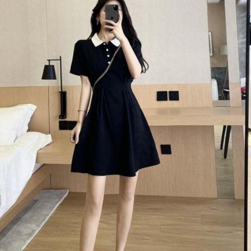 미니 반팔원 원피스 데이트룩 카라 블랙 하객룩 여성