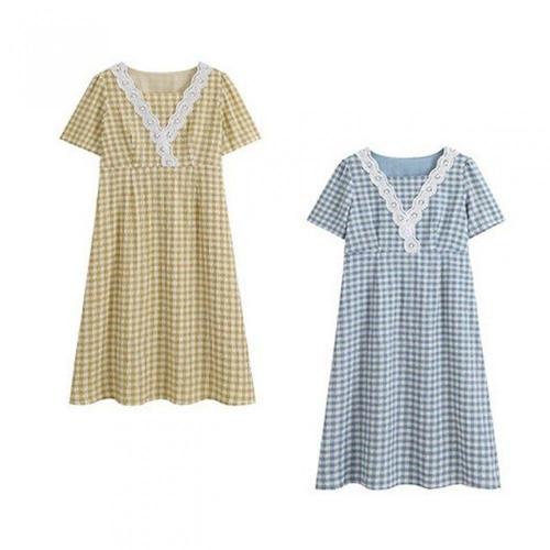 [오너클랜]인기상품 롱 체크 패턴 드레스 하객 데이트 여름 원피스 [WFLLKAD_260305]