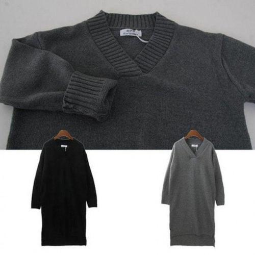 루어스룸 데일리 간절기 여성 루즈핏 브이넥 데일리룩 베이직 빅사이즈 니트 원피스 니트원피스