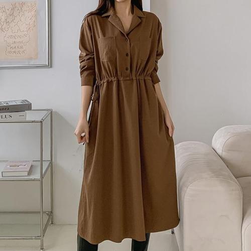 H스타일(OP)머핀카라허리끈반오픈원피스 가을 간절기 원피스 긴팔 OPS 드레스 데일리룩 데이트룩