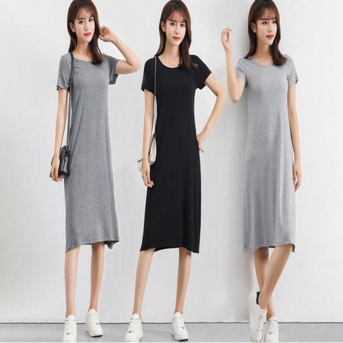 여성 여름 데일리 배색 모달 반팔 원피스 홈웨어 잠옷 WFHXER9