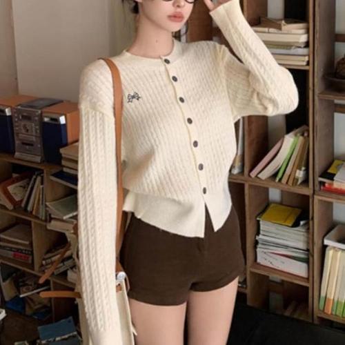 [신상오픈런]여성 슬림핏 크롭 니트 가디건 폴리 케이블 디자인 (46198983)