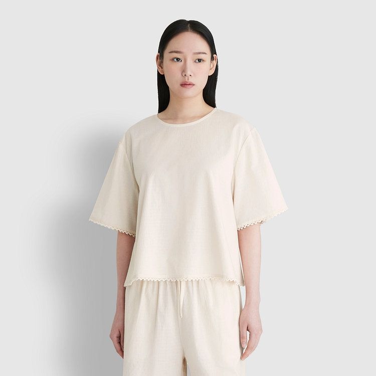 마리끄 국내산 순면 여성 플라워 레이스 시보리 파자마바지