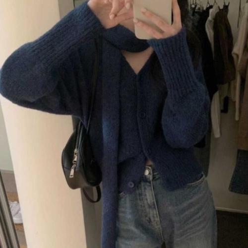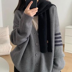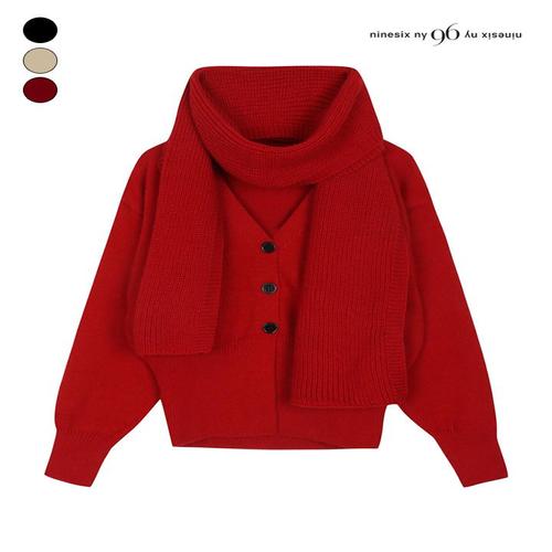 [나인식스뉴욕]도톰 목도리 세트 쓰리 버튼 니트 가디건 (NOBKG014M0)