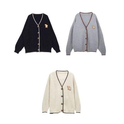 [신상오픈런]여성 리본 자수 도톰 노카라 니트 가디건 러블리 스타일