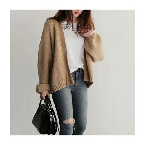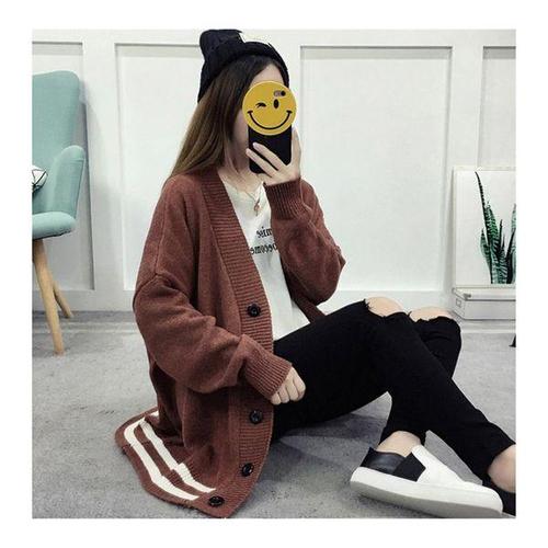 Rakumin 여성 루즈핏 브이넥 도톰 니트가디건