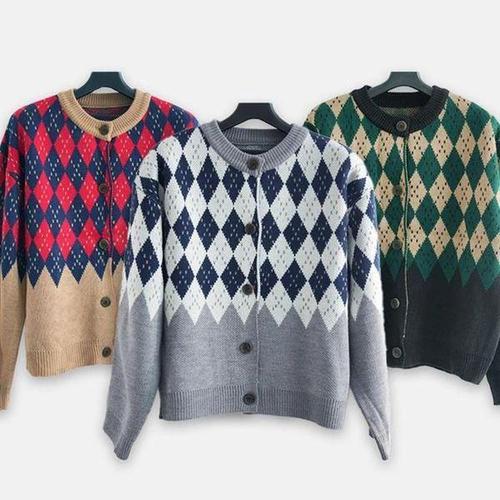 [셀러허브_여성트랜드패션]여성 가디건 아가일 니트 핏 예쁜 도톰 루즈 X